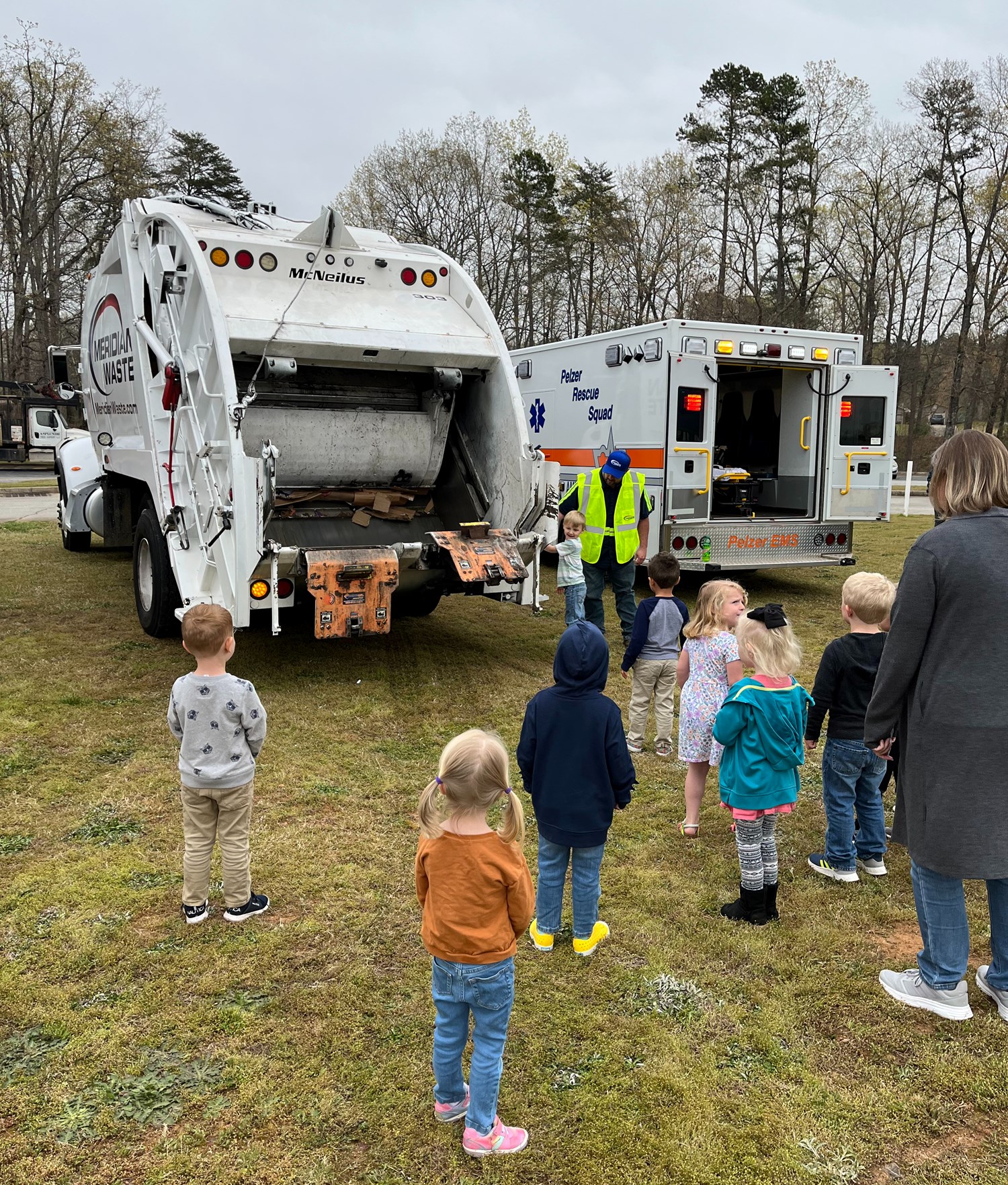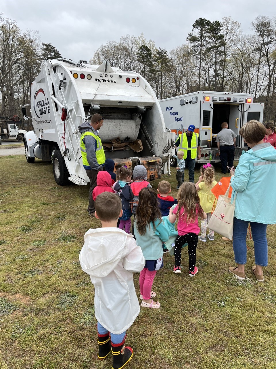 Meridian Waste - South Carolina was one of multiple service companies showing off their large and impressive trucks at the Siloam Christian Preschool’s Touch-A-Truck event on Tuesday, April 5th. In addition to exhibiting how the rear-loading garbage truck “eats trash,” the young students were sent back to class with the annual Meridian Waste Earth Day Coloring Contest pages to participate in this year’s competition.